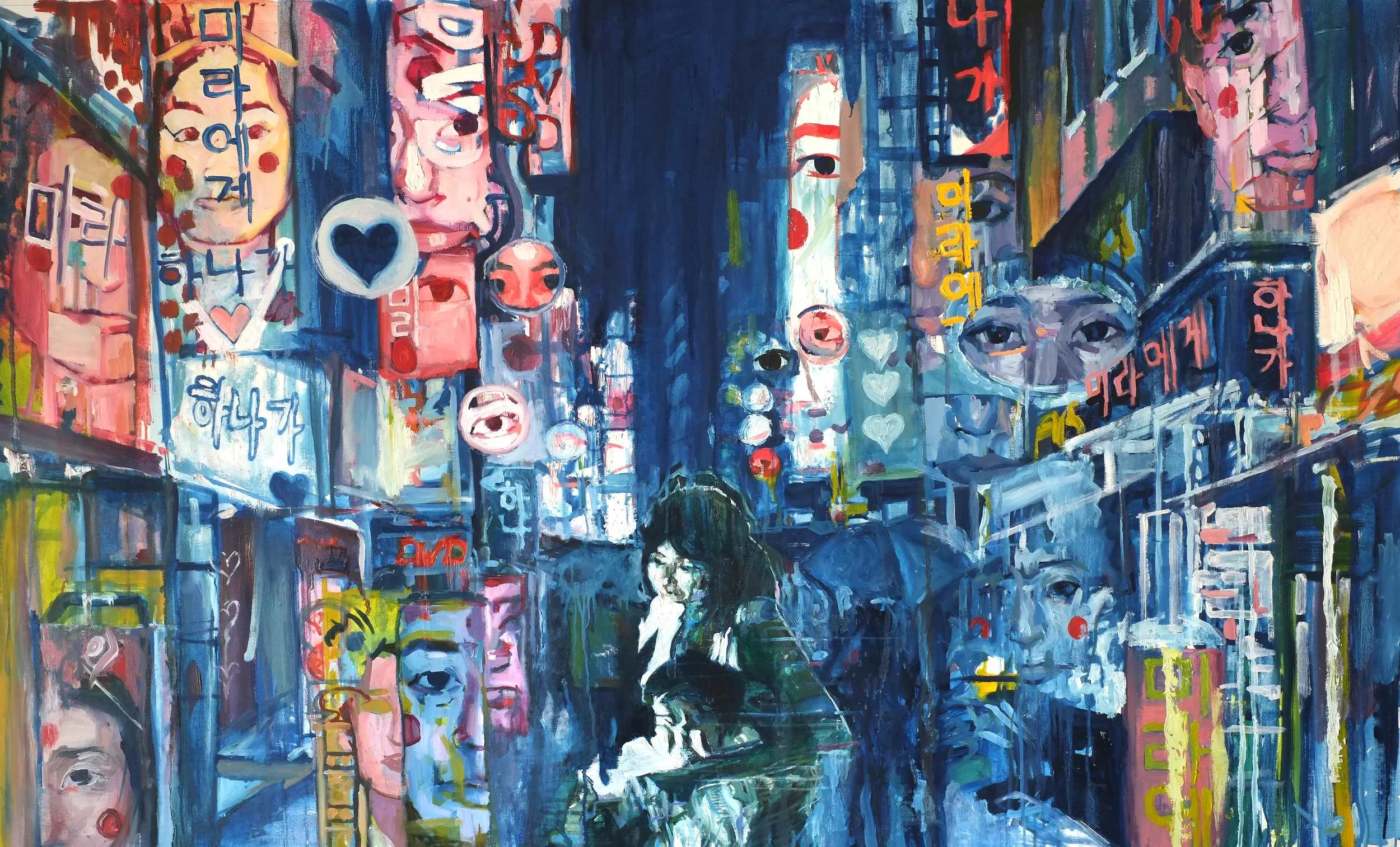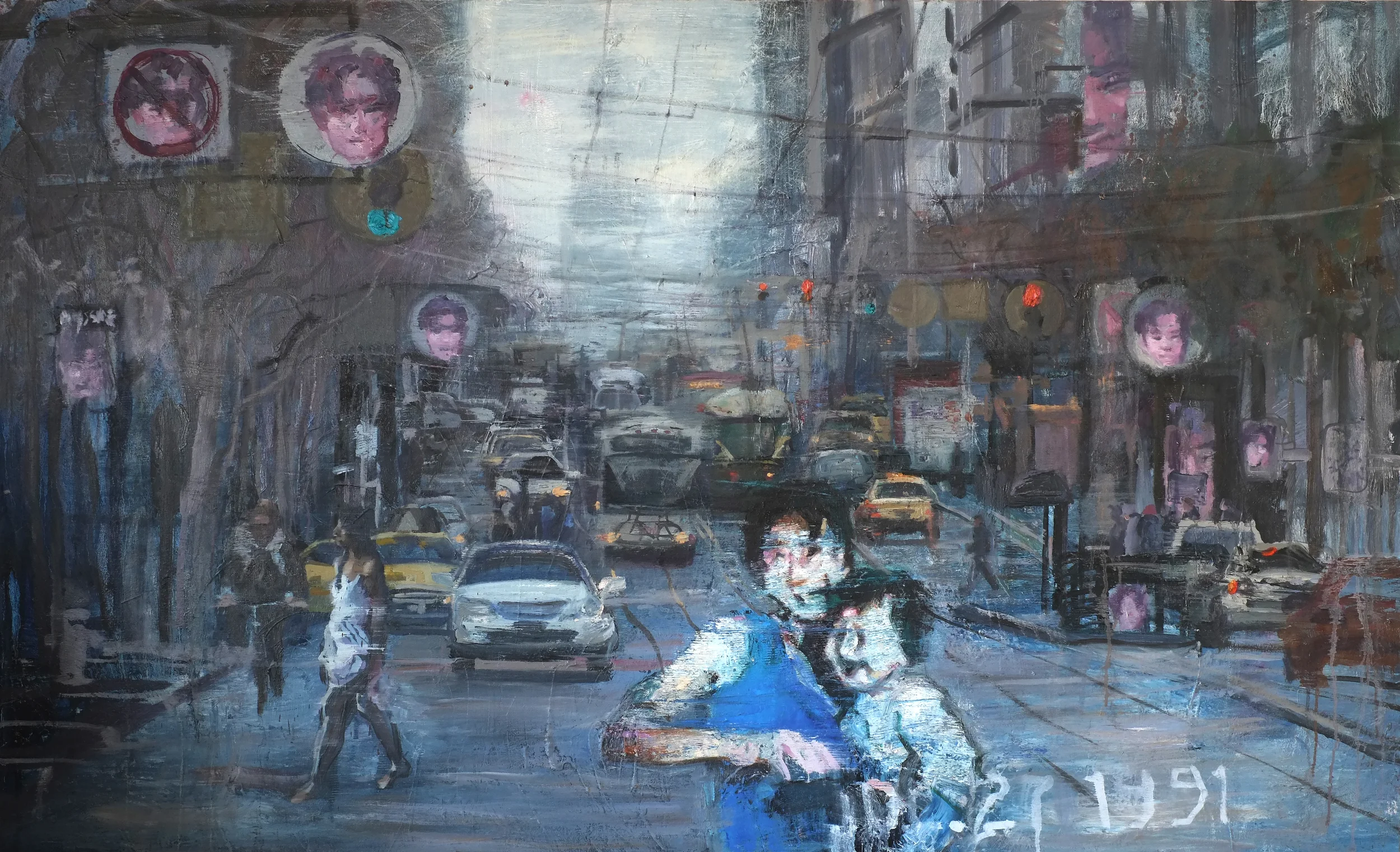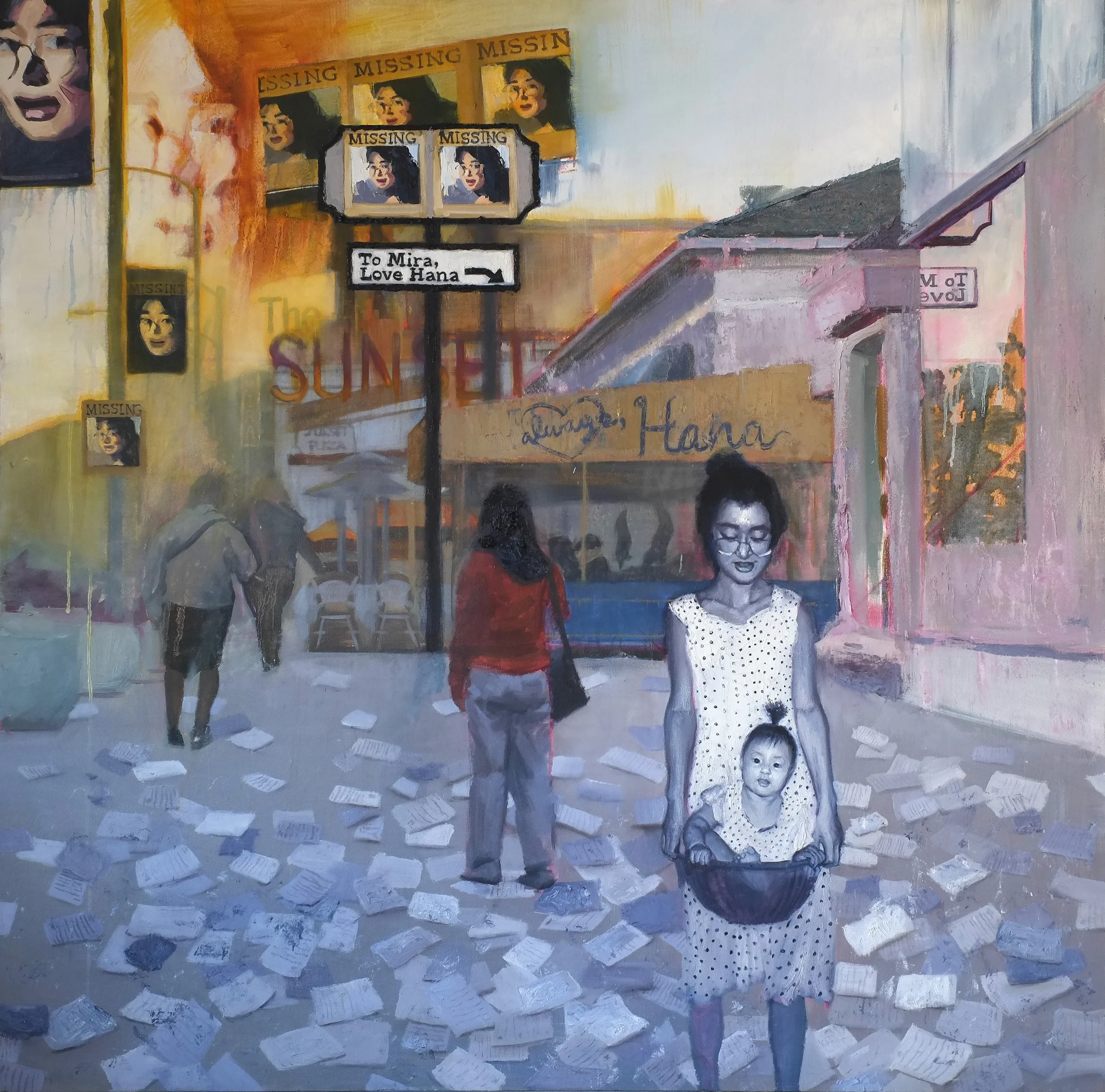 Each painting has images of my mother with missing persons posters. Sometimes there are images of my father or myself as a baby. I started doing this as a way to process my loss and to find a connection to Mira. Ultimately my goal is to find her, but to also send her a message of love, support and care,